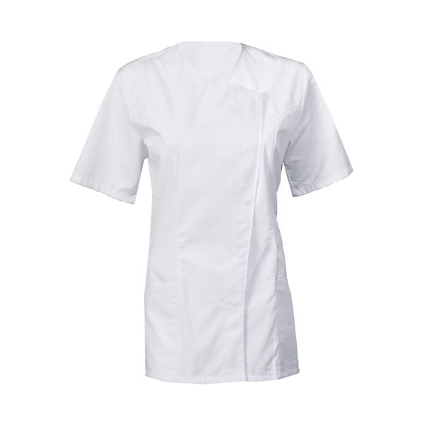 D'une élégante couleur blanche, cette blouse est parfaite pour les environnements médicaux et de soins.