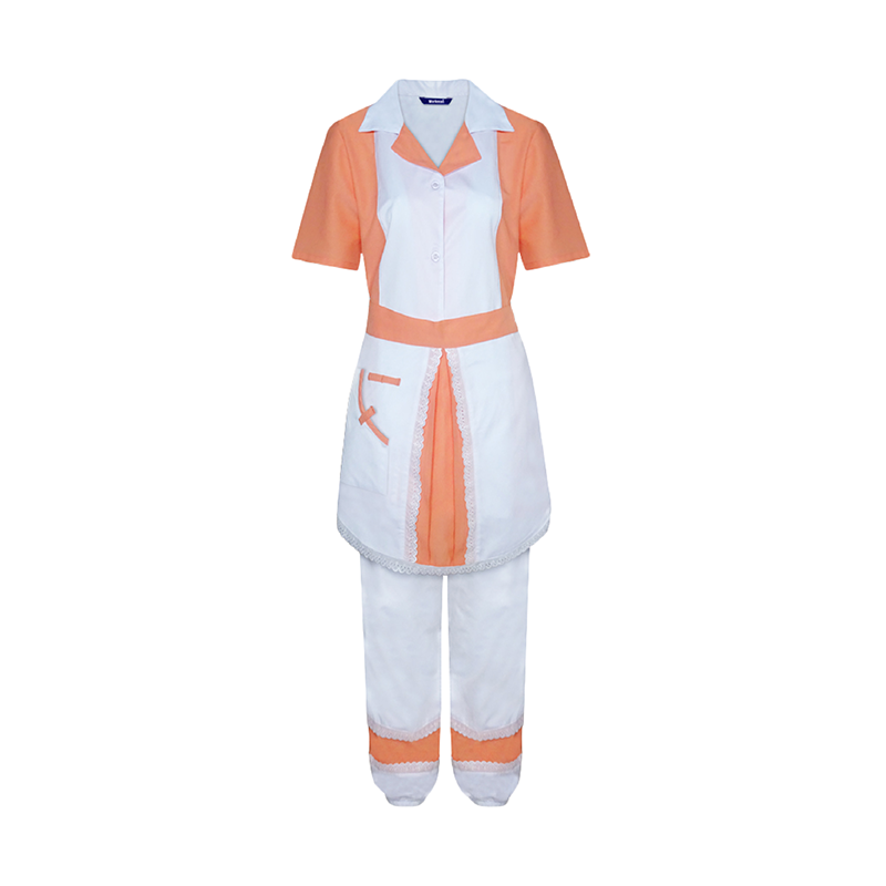 La tenue de femme de chambre avec col chemisier présente un style élégant et fonctionnel.